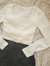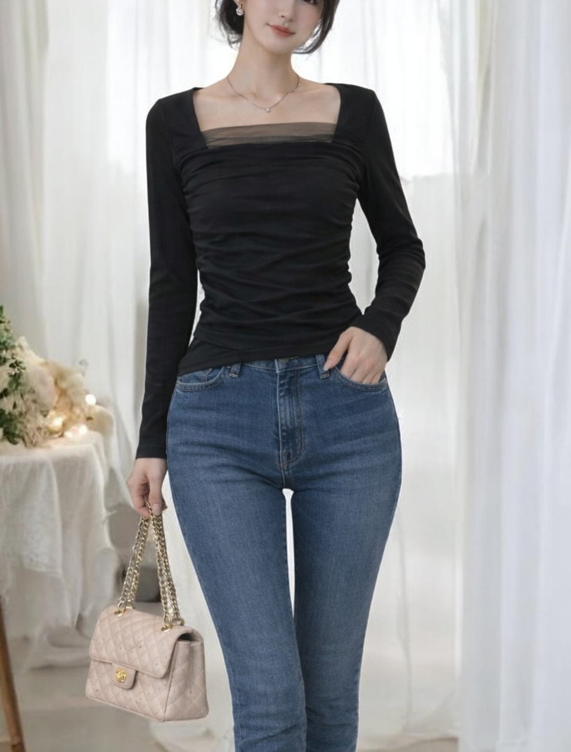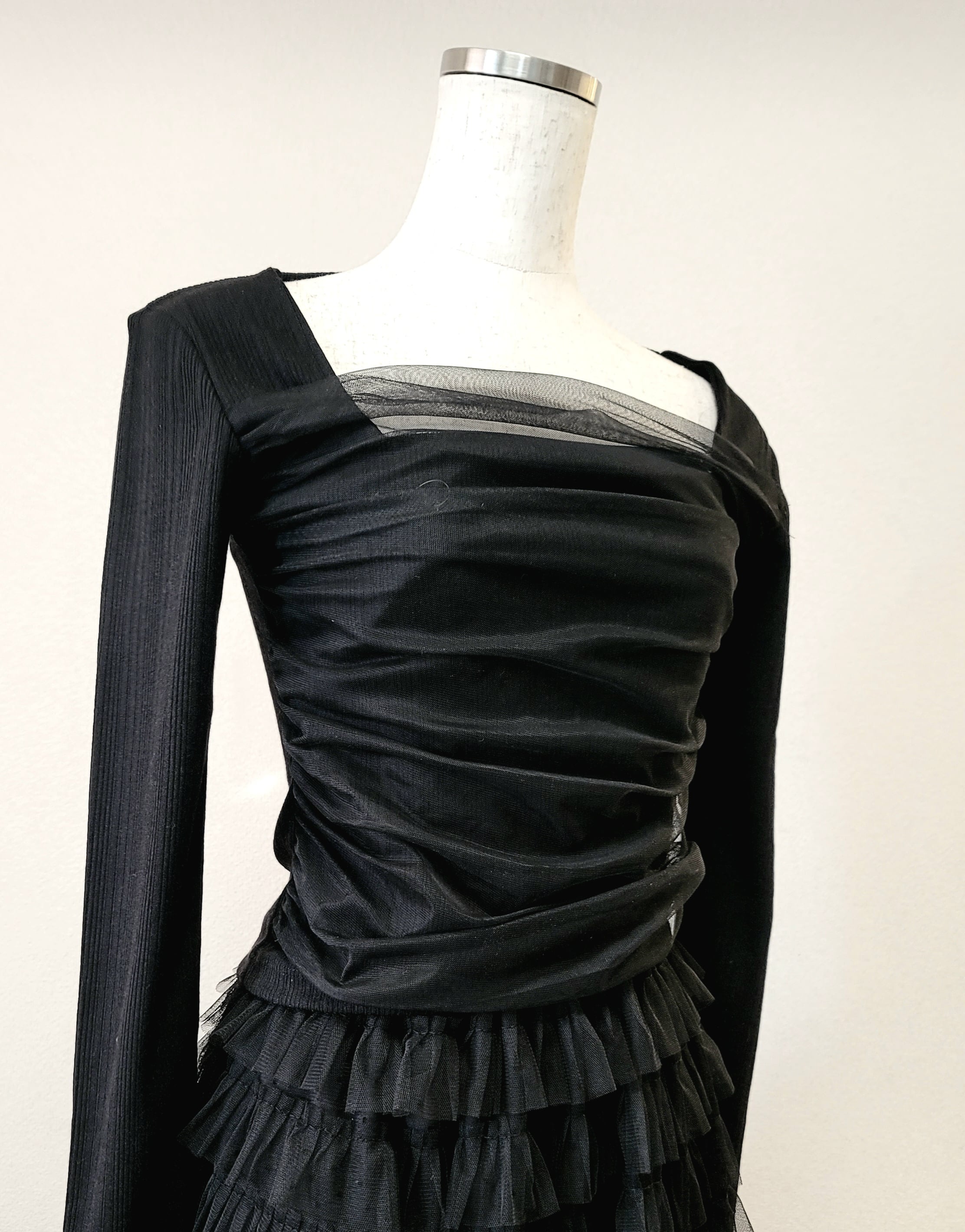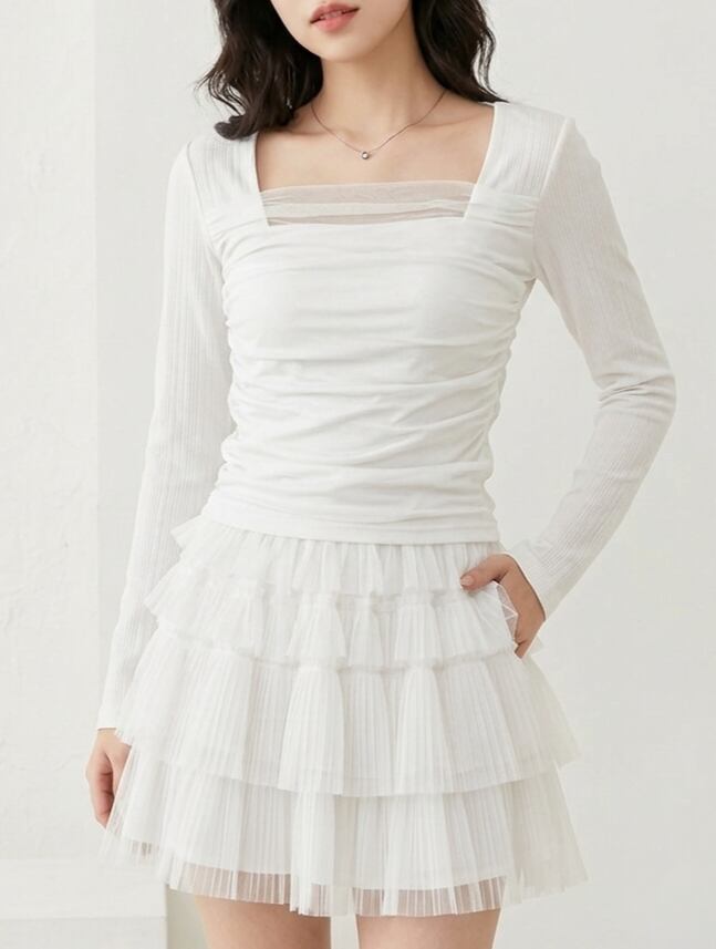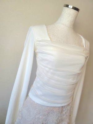 チュールスクエアネック ロングスリーブトップス(アイボリー/ベージュ/ブラック)