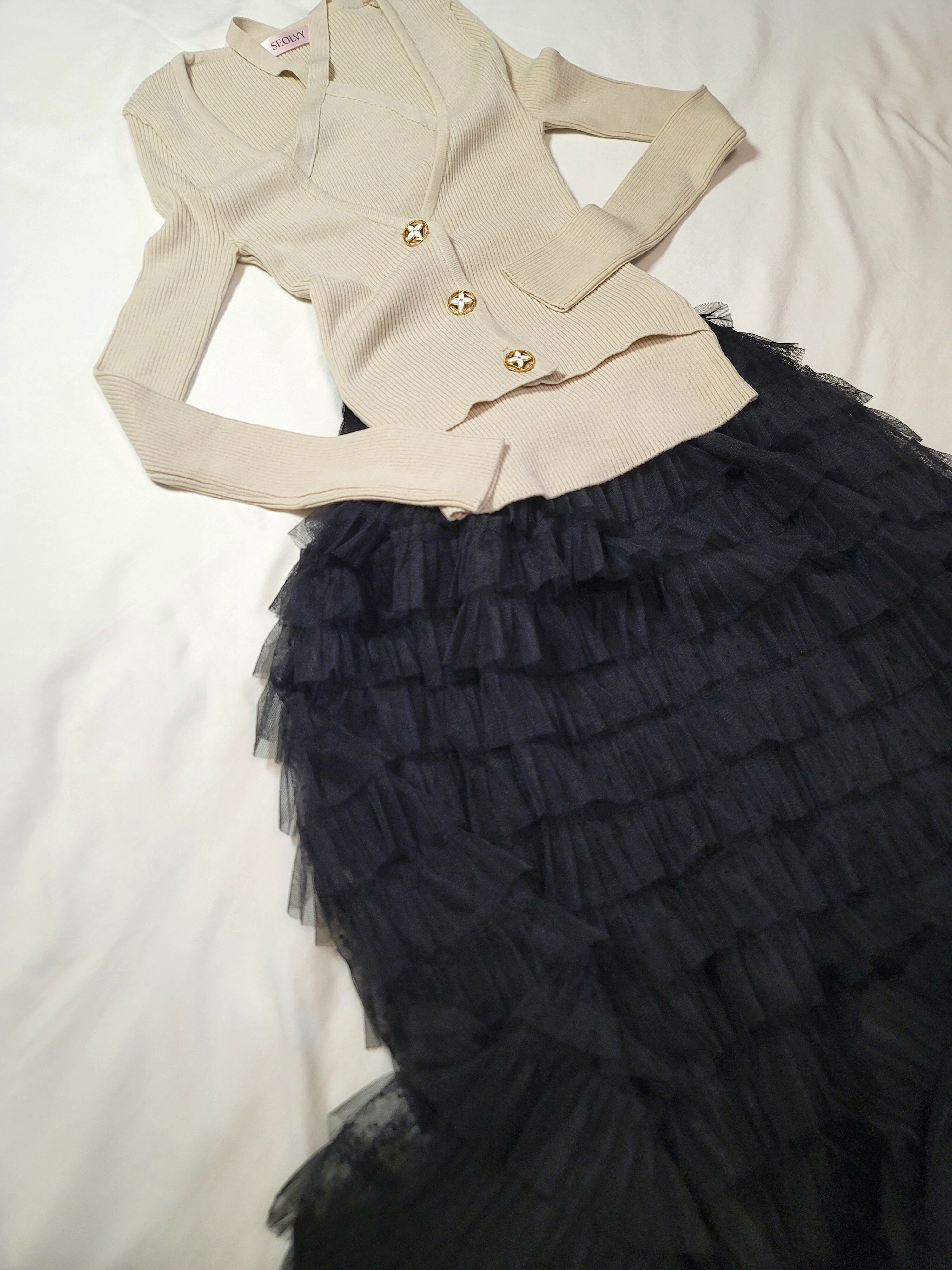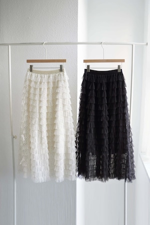 チュールドット カンカンフレアロングスカート(ベージュ/ブラック)